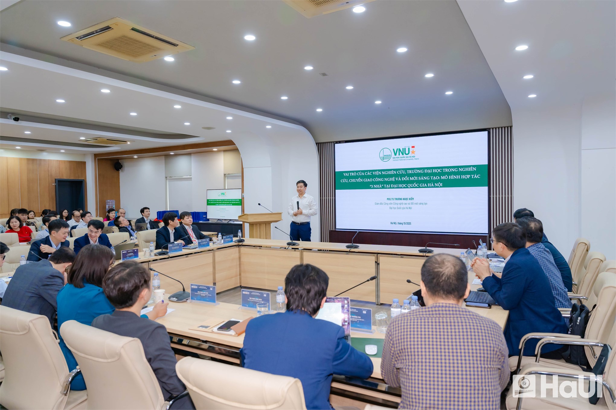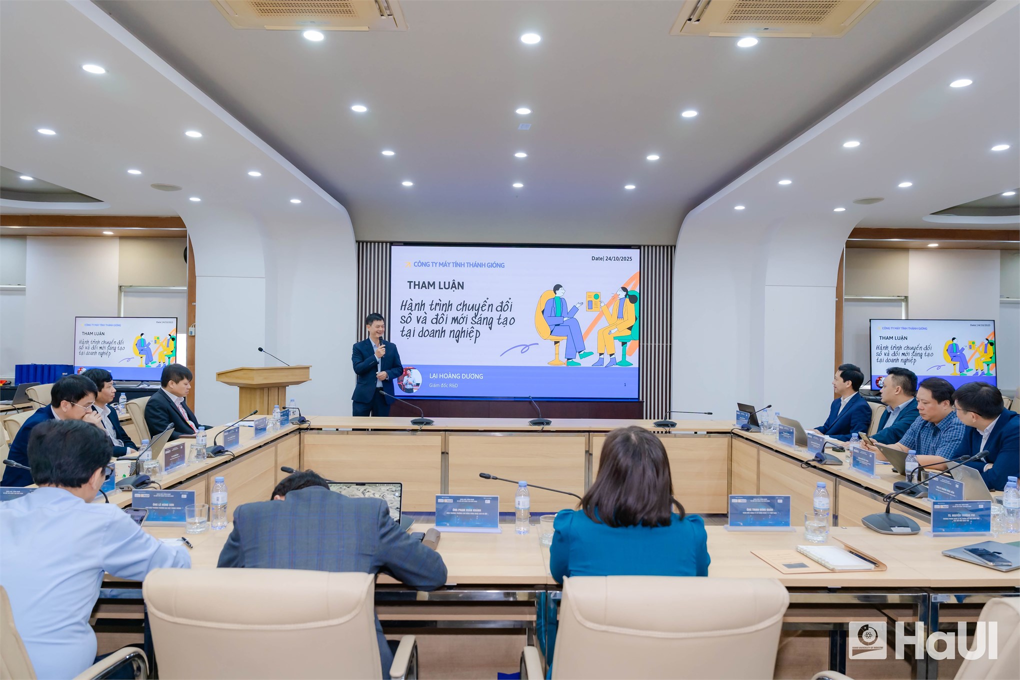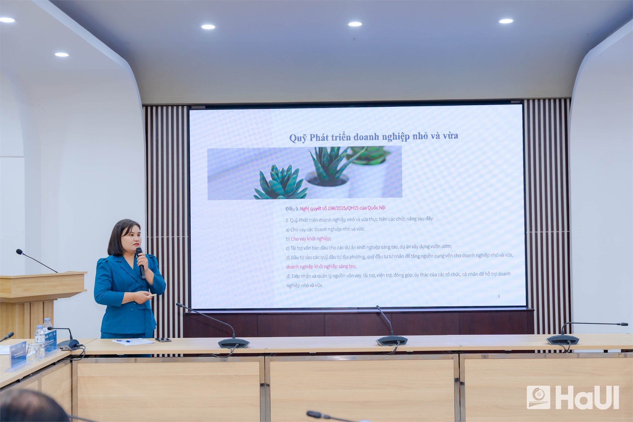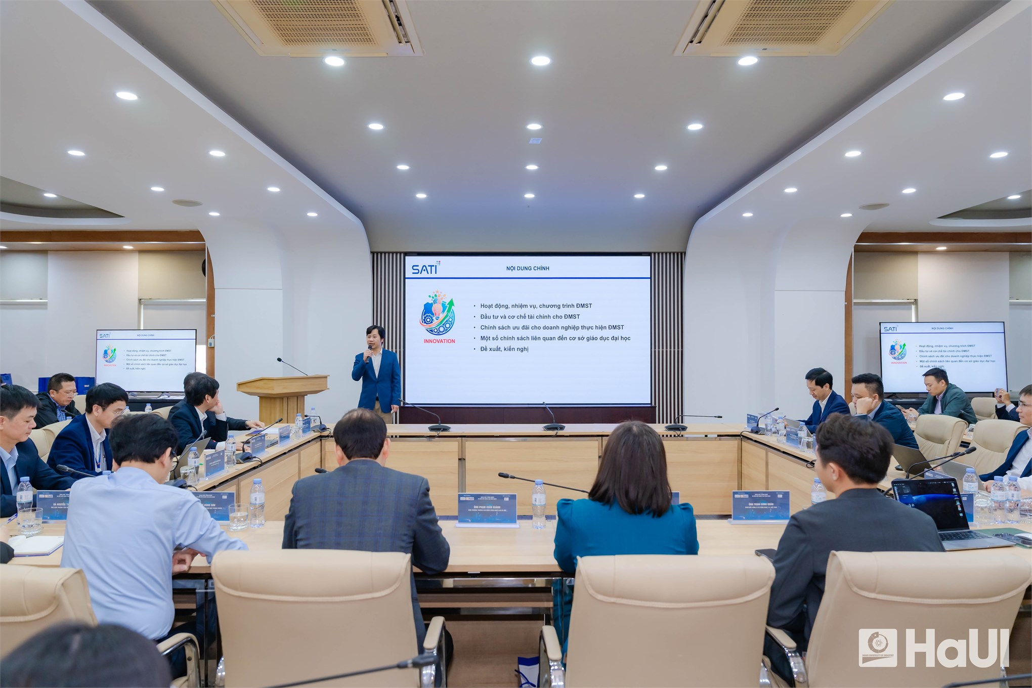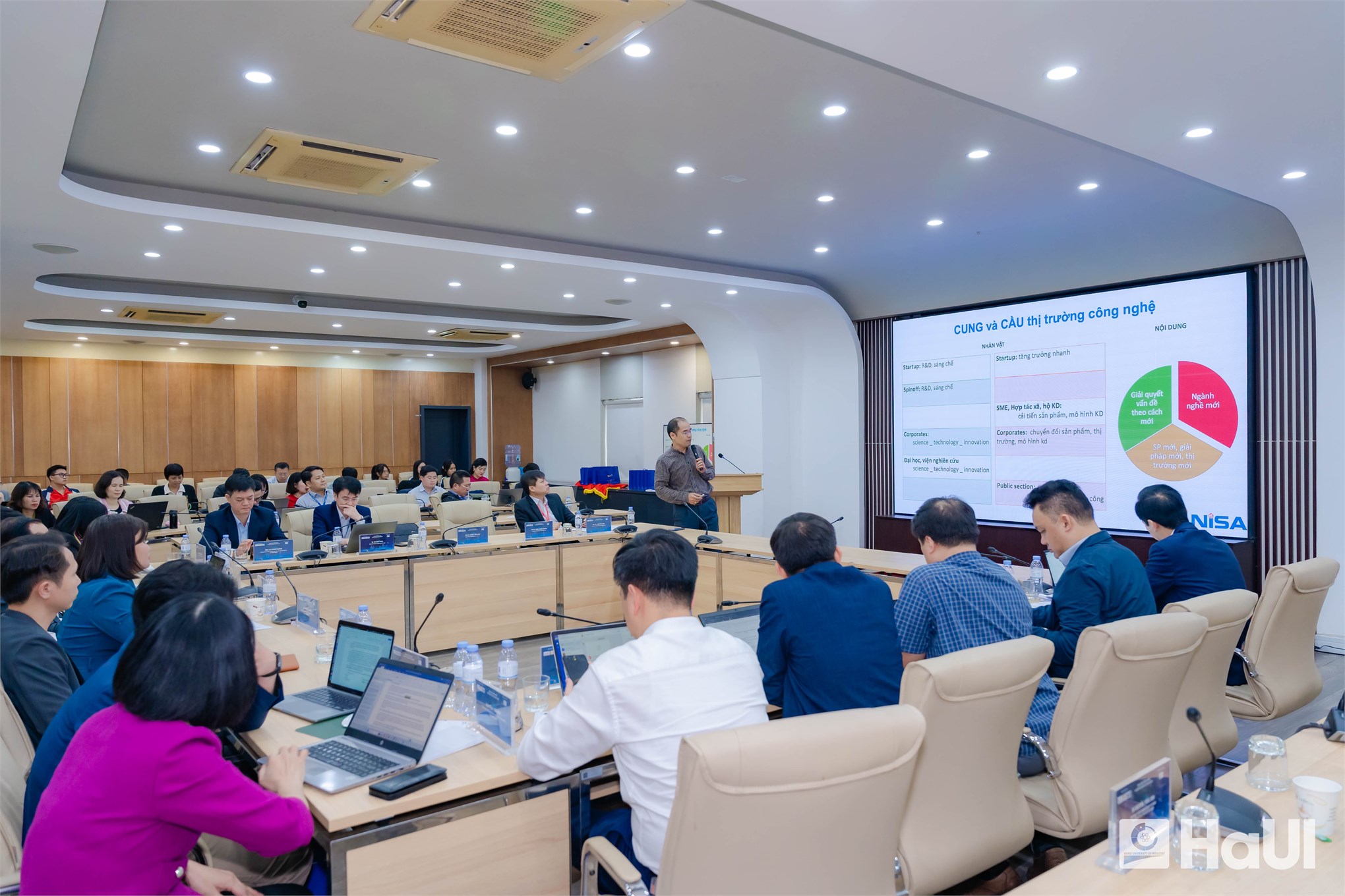 Trong phần tham luận, nhiều nội dung chuyên sâu được trình bày, làm rõ định hướng chính sách, cơ chế tài chính và mô hình liên kết trong hệ sinh thái đổi mới sáng tạo. Đặc biệt, câu chuyện khởi nghiệp của ông Trịnh Đăng Quân – Giám đốc Công ty CP Công nghệ 111 Việt Nam, cựu sinh viên HaUI, đã truyền cảm hứng mạnh mẽ. Sản phẩm đèn LED tiết kiệm 50% năng lượng phục vụ ngư dân của anh đã vươn ra thị trường khu vực, thể hiện tinh thần “từ giảng đường đến doanh nghiệp sáng tạo”.